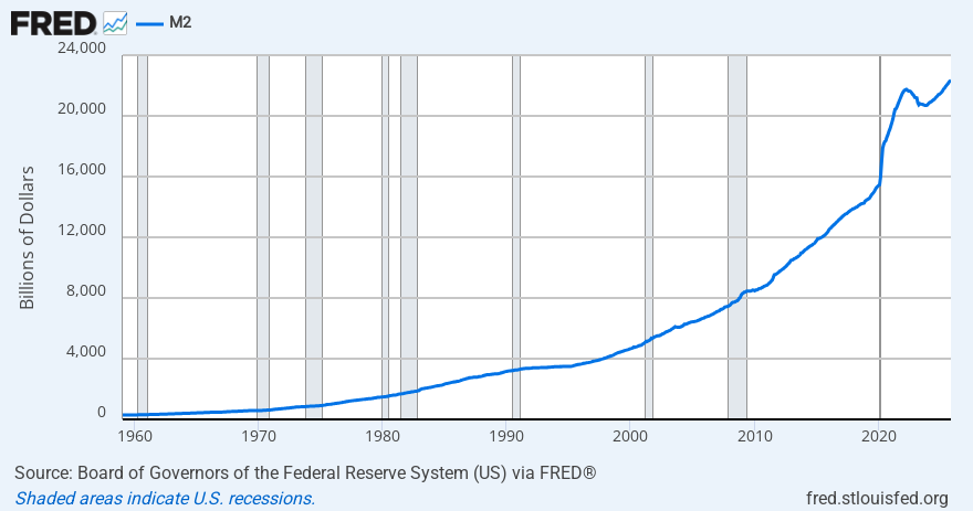 미국의 M2는 연준에서 통계를 기반으로 월간 업데이트를 하며, FRED에서 쉽게 확인할 수 있습니다. 국내의 M2는 한국은행에서 발표를 하고 있습니다.