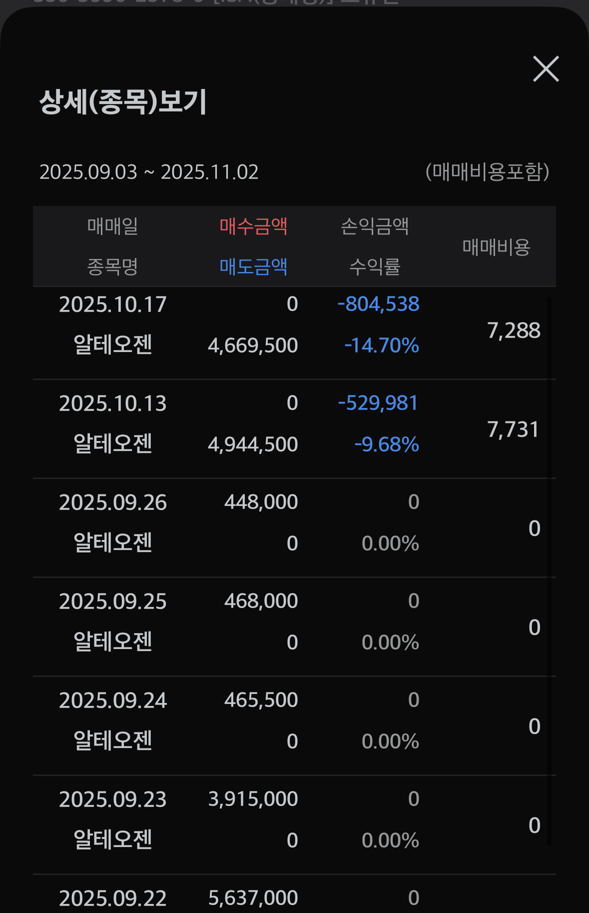 9월 22일부터 알테오젠 매집을 시작했습니다. 그러나 집 계약일 전에 저는 급하게 모아왔던 돈들을 끌어모으는 과정에서 매도해야만했습니다.